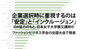 • 企業選択時に重視するのは「安定」と「インクルージョン」iDA協力のもと、日本女子大学勝又講師がファッションビジネス学会の全国大会で発表