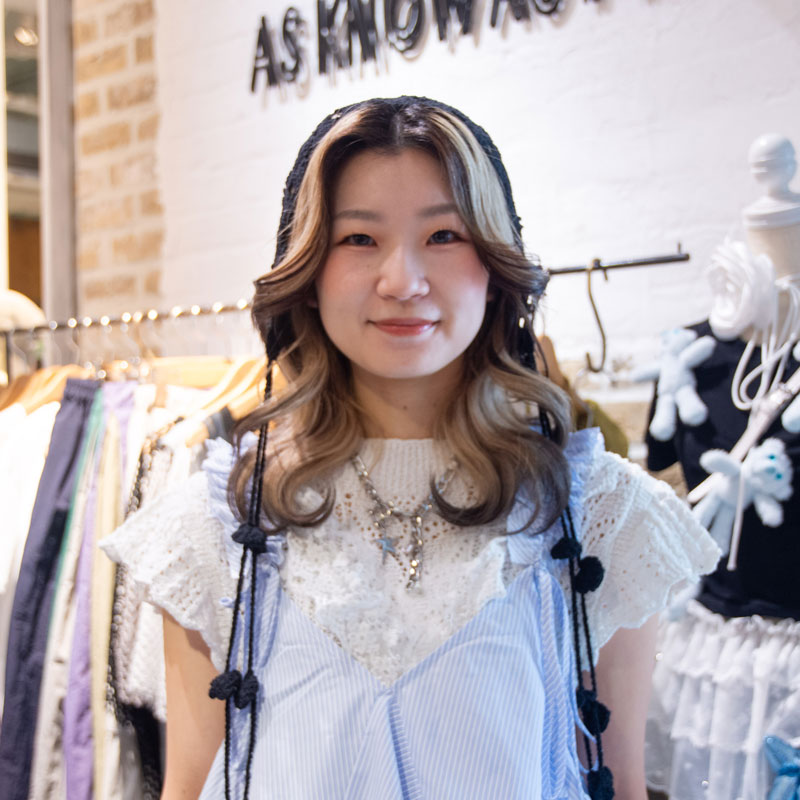 化粧品メーカーで働く母の影響でファッションが好きになり、服飾短大へ進学。新卒でアズノゥ アズに入社し、アズ ノゥ アズ ピンキーに配属。川越店、原宿店、錦糸町店などで勤務し、現職へ。