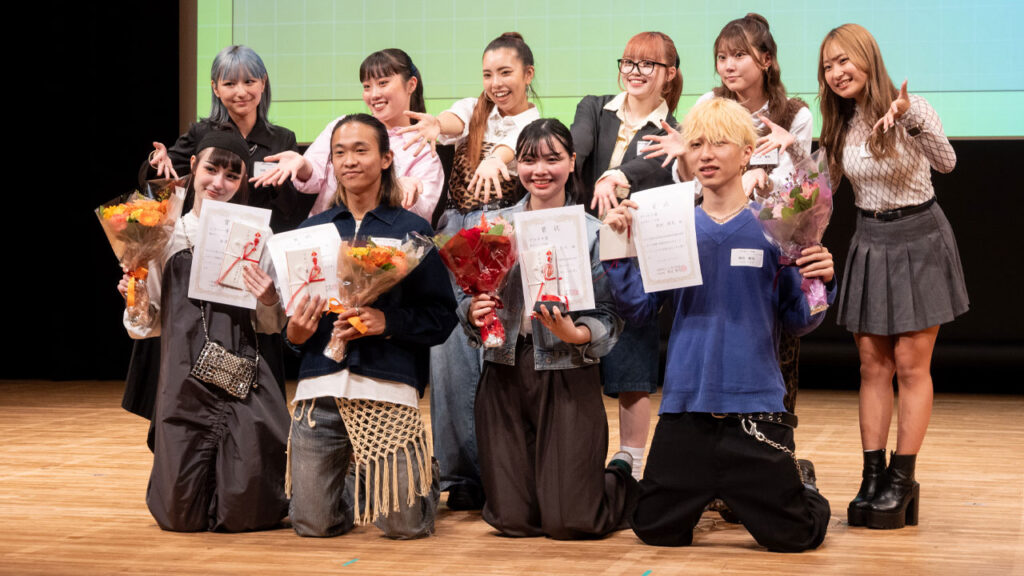 シルバー賞 西澤瀬里茄(織田ファッション専門学校・写真左から1人目)