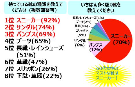 株式会社宝島社が発行する60代女性向けファッション誌『素敵なあの人』で、読者148人を対象に、60代女性の「靴事情」についてWEBアンケートを実施された。