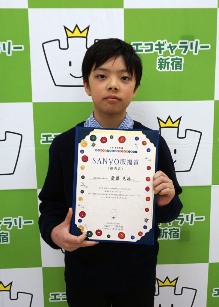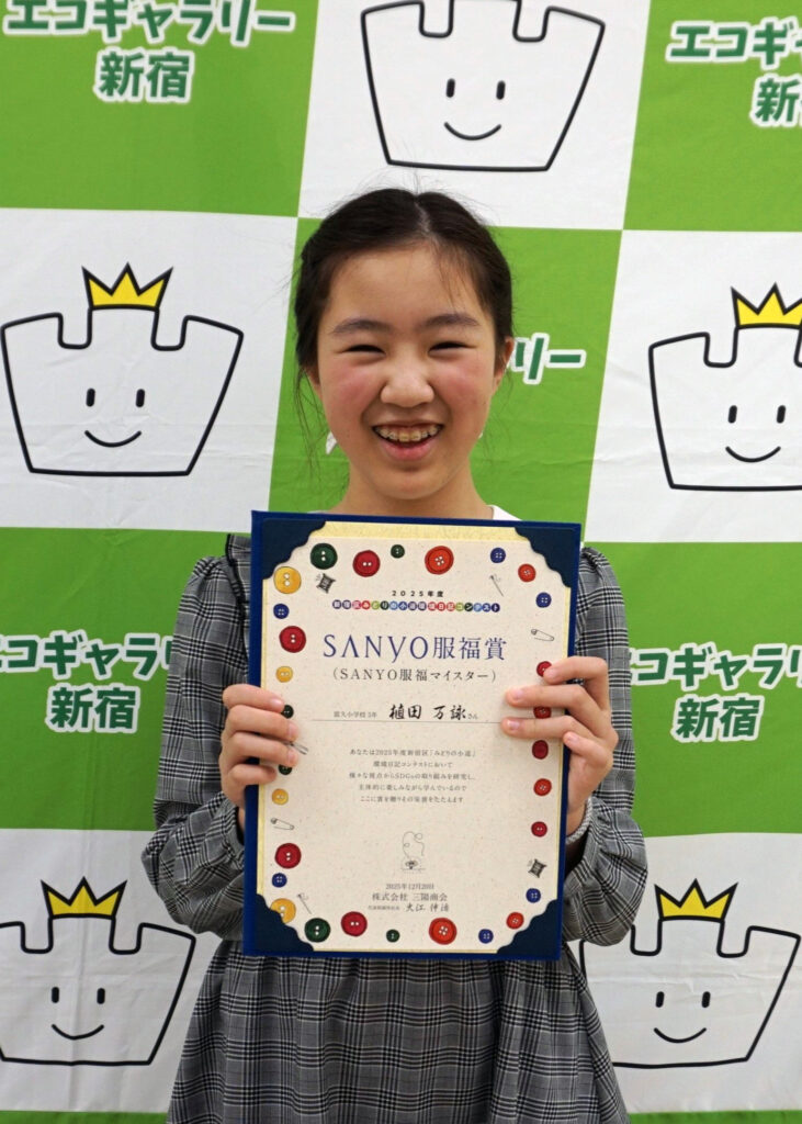 三陽商会は、エコギャラリー新宿が主催する「新宿区『みどりの小道』環境日記コンテスト」に協賛。2018年度から企業賞「SANYO服福賞」を設け、服や布に関する優れた環境日記を書いた小学生を表彰している。創設8年目となる2025年度「SANYO服福賞」に、区内20校から寄せられた1,005点の応募作品の中から優秀賞1名、SANYO服福マイスター1名、特別賞4名の計6名を選出した。