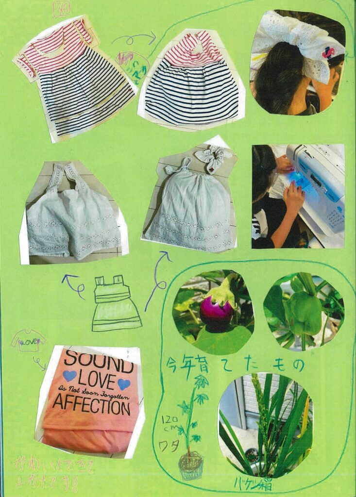 今回も思い返すと、服から作ったシュシュ、巾着袋、バッグと色々と作りました。可愛いものを残したくて、お母さんと一緒に作るものを決めました。作ることは結構好きなので、得意なことをして、しかもマイスター(名人という意味の)賞をもらえるなんて嬉しかったです。